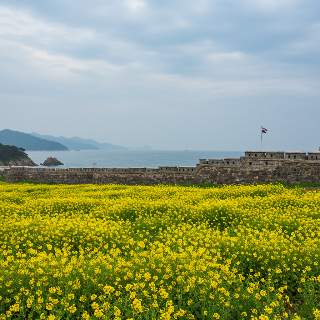 마지막으로 추천할 곳은 역사의 숨결과 봄꽃의 화사함이 공존하는 사천 선진리성입니다. 임진왜란 당시 격전지였던 선진리성 주변으로 봄이 되면 아름다운 유채꽃밭이 펼쳐집니다. 오랜 세월의 흔적을 간직한 성곽과 그 아래 노랗게 피어난 유채꽃의 조화는 다른 곳에서는 느낄 수 없는 독특한 분위기를 자아냅니다.
