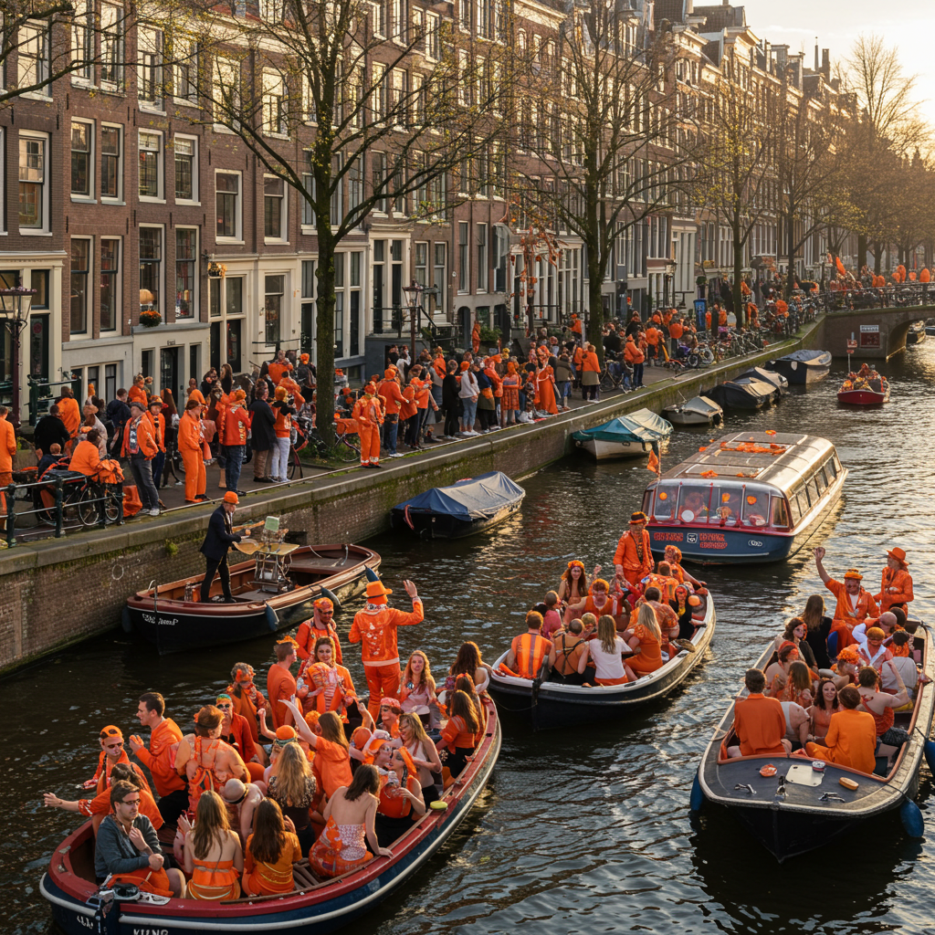 A. 오렌지색 옷을 입고 거리 파티에 참여하고, 운하 보트 투어를 즐기면 됩니다.