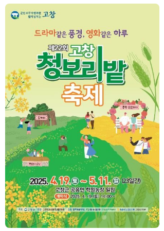 매년 봄, 고창 청보리밭 축제는 초록빛 물결과 함께 수많은 방문객을 맞이합니다. 2025년에는 더욱 다채로운 프로그램과 체험으로 힐링의 시간을 선사할 예정입니다.